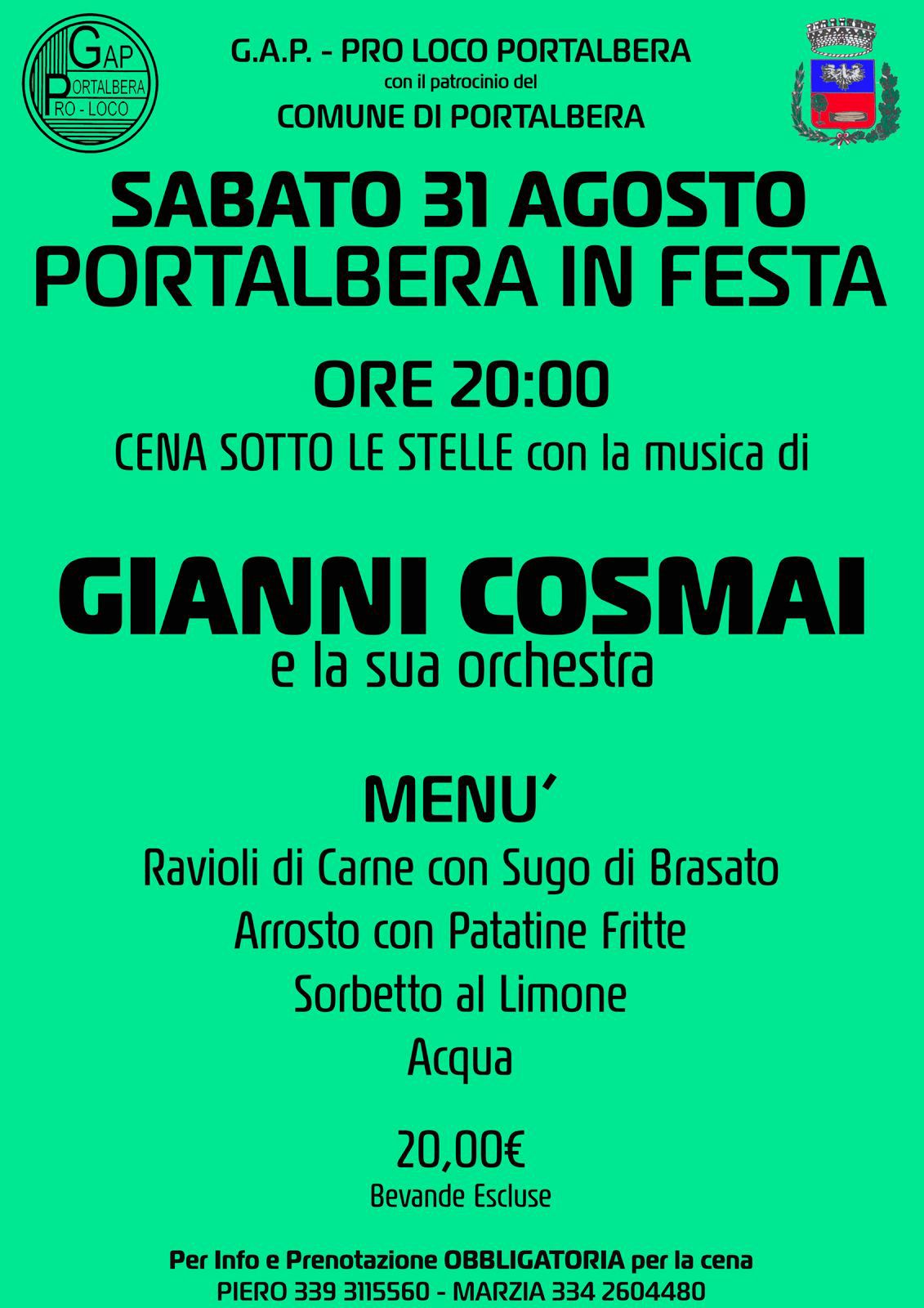Sabato 31 Agosto "PORTALBERA IN FESTA"